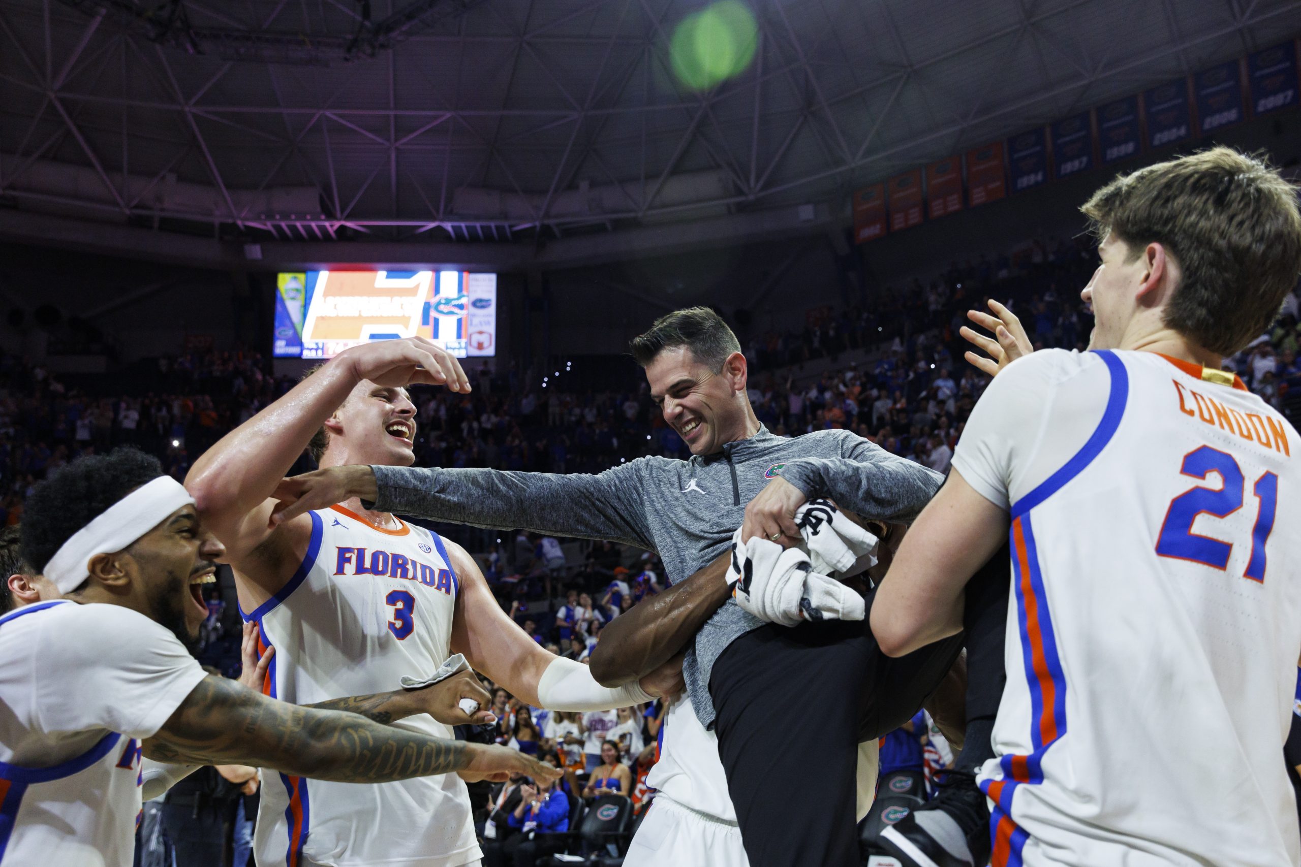 佛罗里达在最近16场比赛中取得了惊人的15胜1负,期间击败了六支排名球队,并且最近10场胜利中有9场是以13分或以上的优势获胜。他们近两场比赛总得分高达219分,并且连续六场对阵排名球队的比赛得分超过90分,这是美联社历史上的第三长纪录,也是1989-90赛季以来的最长纪录。